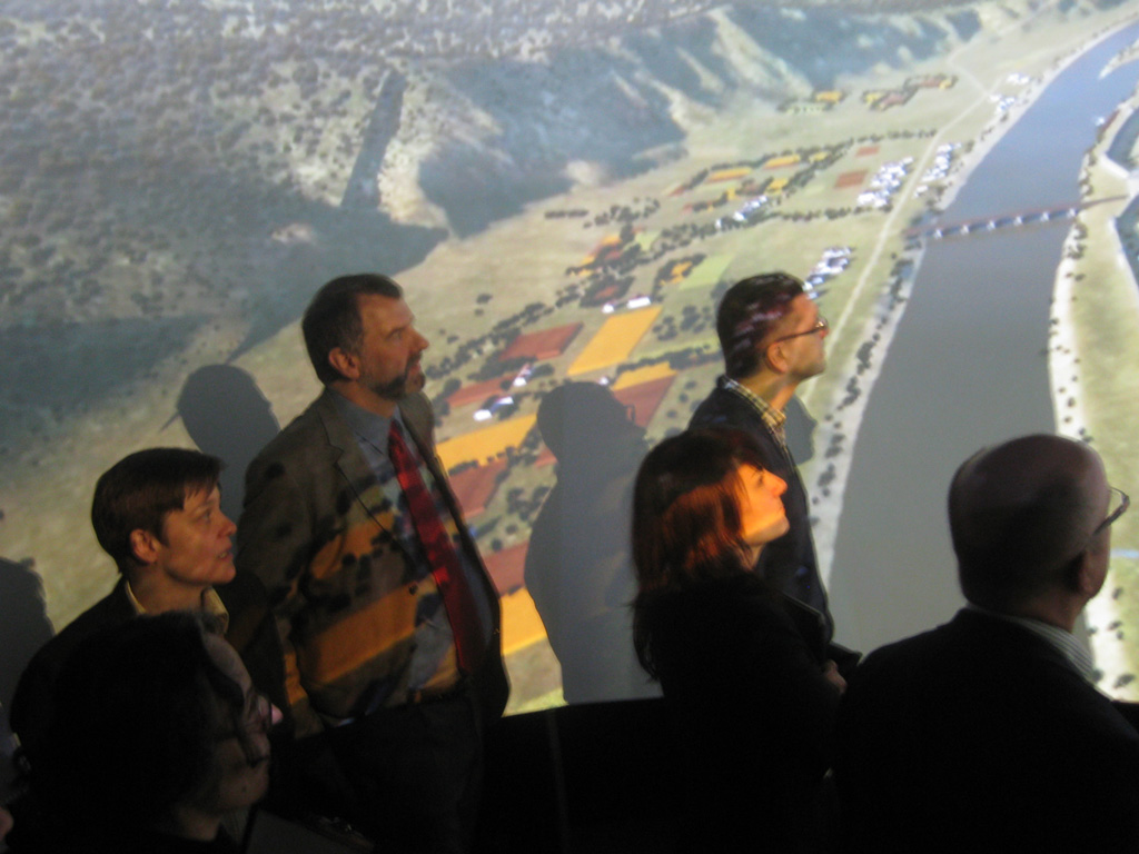 Besucher verfolgen den Film in der Naexus. Darunter der Direktor des Rheinischen Landesmuseums Trier Dr. Marcus Reuter und Dr. Nina Willburger, Referatsleiterin des Landesmuseums Württemberg. Foto: Dießenbacher